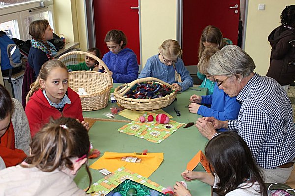 Anschließend zeigten alle Höfling-Kinder einen gemeinsam einstudierten Tanz zu dem Stück "Happy", bevor die Stomp-AG zum nächsten Teil überleitete. Alle Klassen haben in der Woche vor dem Basar fleißig gebastelt und gebacken, um an verschiedenen Ständen den zahlreichen Gästen Kulinarisches und Künstlerisches rund um das Thema "Ostern" anzubieten. Zudem gab es verschiedene Bastel- und Spielangebote, die von den Kindern ausgiebig genutzt wurden.