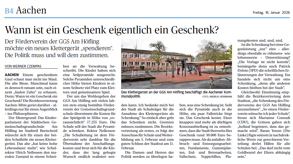 Hier finden Sie die verschiedenen Presse-Berichte über unsere Schule aus den letzten 12 Monaten. Sie können auch alle Berichte sehen oder diese nach den Jahren 2000 [0], 2001 [0], 2002 [0], 2003 [0], 2004 [3], 2005 [12], 2006 [8], 2007 [3], 2008 [10], 2009 [12], 2010 [32], 2011 [12], 2012 [12], 2013 [19], 2014 [6], 2015 [11], 2016 [10], 2017 [10], 2018 [6], 2019 [4], 2020 [1], 2021 [0], 2022 [1], 2023 [1], 2024 [2], 2025 [4], 2026 [2], filtern. Mit einem Klick auf den jeweiligen Artikel-Scan wird dieser auf einer neuen Seite in Originalgröße angezeigt.